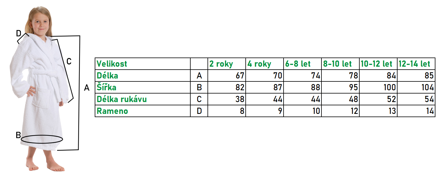 Velikost: 2 roky, 2-4 roky, 4-6 let, 8-10 let, 10-12 let, 12-14 let